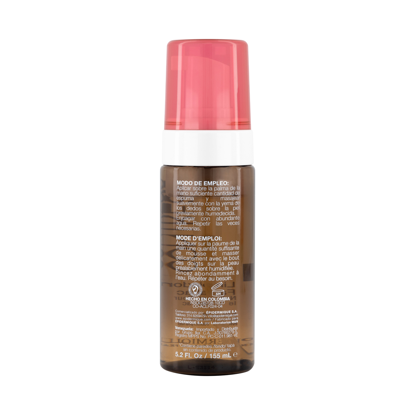 Aplicar sobre la palma de la mano suficiente cantidad de espuma y masajear suavemente con la yema de los dedos sobre la piel previamente humedecida. Enjuagar con abundante agua. Repetir las veces necesarias.