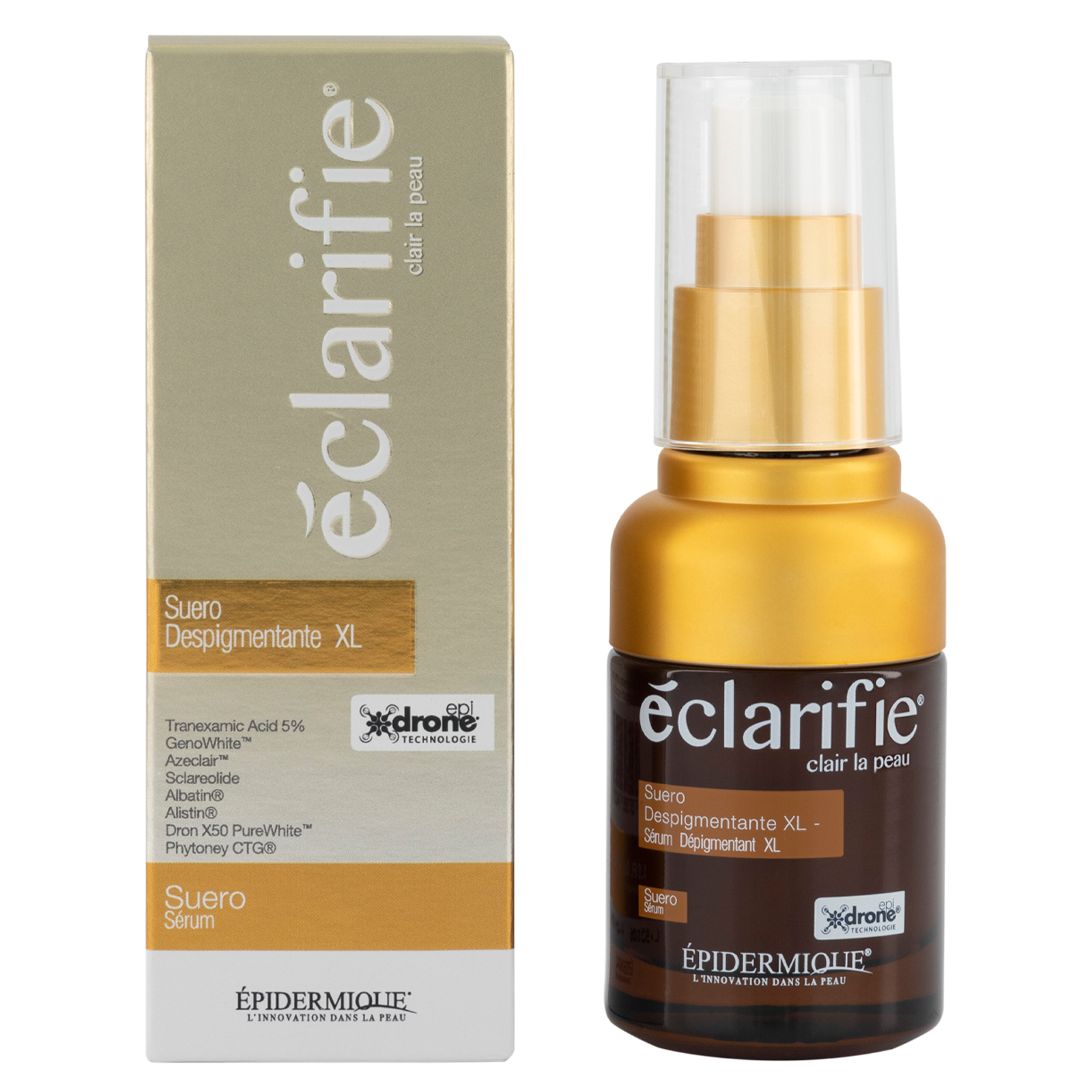 Dron X50 pure White, Ácido Tranexámico, GenoWhite™, Azeclair, SymBright ™, SymBright ™, Albatin, Alistin, Venuceane, Phytoney CTG, Vitamina C.