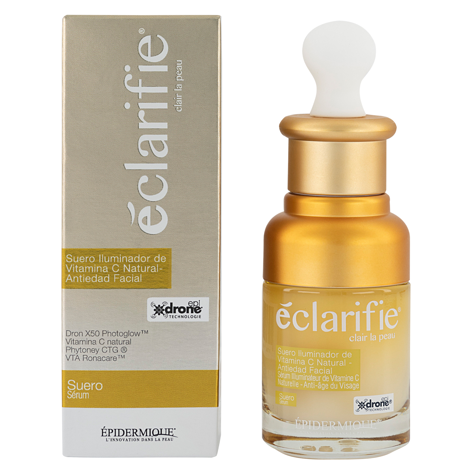 Devuelve el efecto radiante a la piel, gracias a la tecnología Epidrone de su activo Photoglow que encapsula extracto de Chlorela Vulgaris (algas), el cual absorbe energía de la luz y la transforma selectivamente en energía aportando luminosidad a la piel apagada o envejecida.