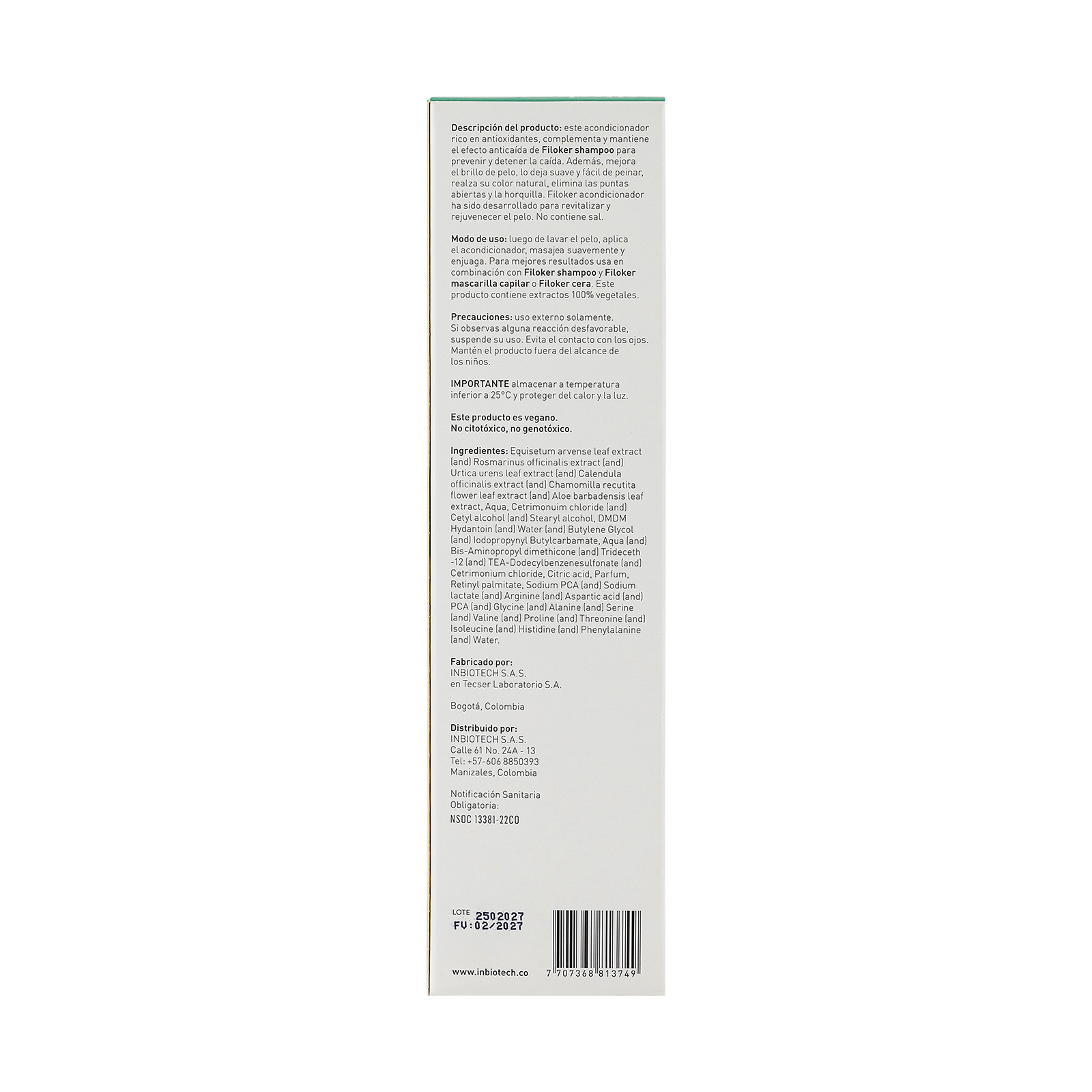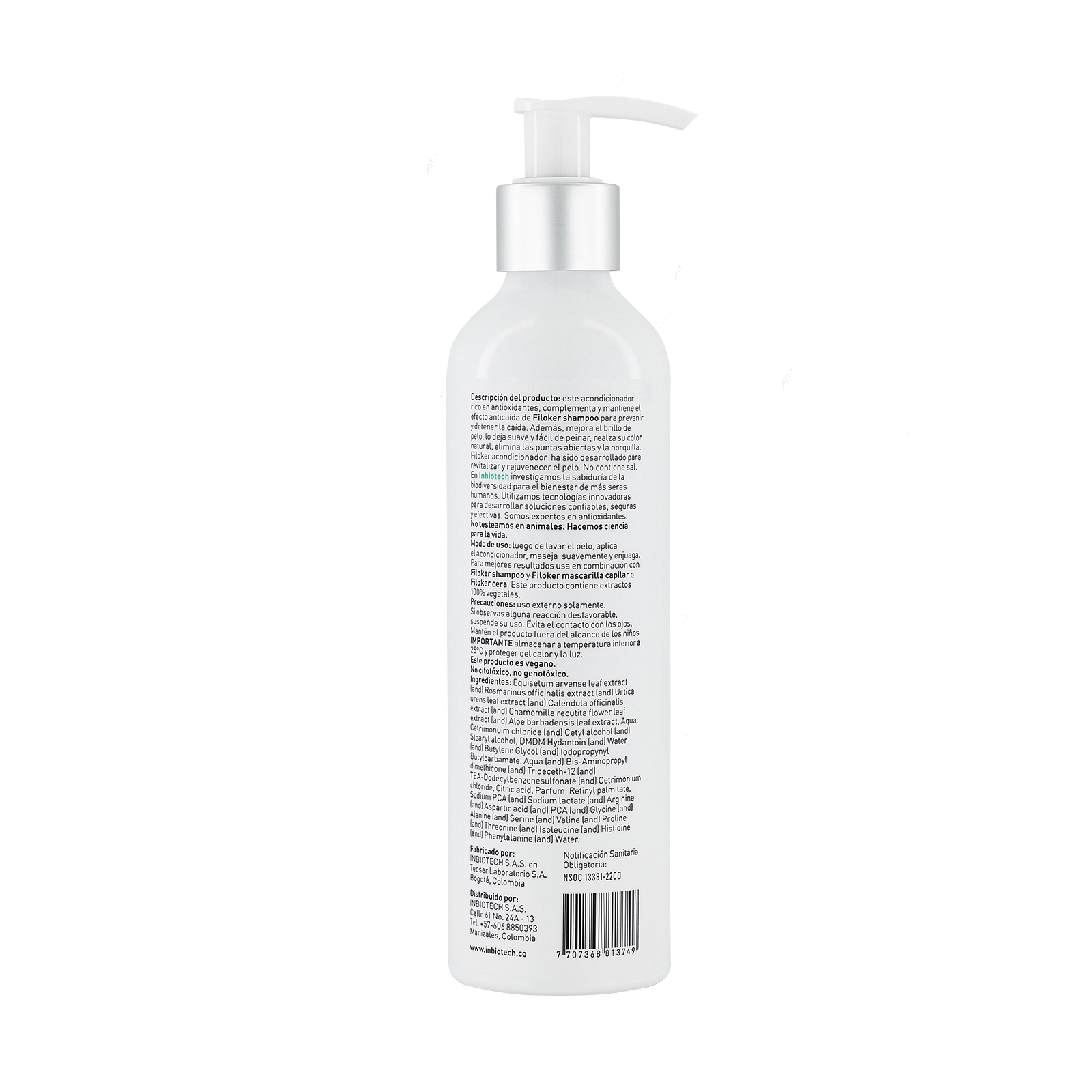 Filoker Acondicionador, una solución innovadora diseñada para mantener y potenciar los efectos del tratamiento capilar, con especial atención al cuidado del cabello. Esta fórmula de uso diario está diseñada para prevenir la caída del cabello, fortalecer el nuevo crecimiento y proporcionar un cabello saludable y fuerte con un brillo duradero.