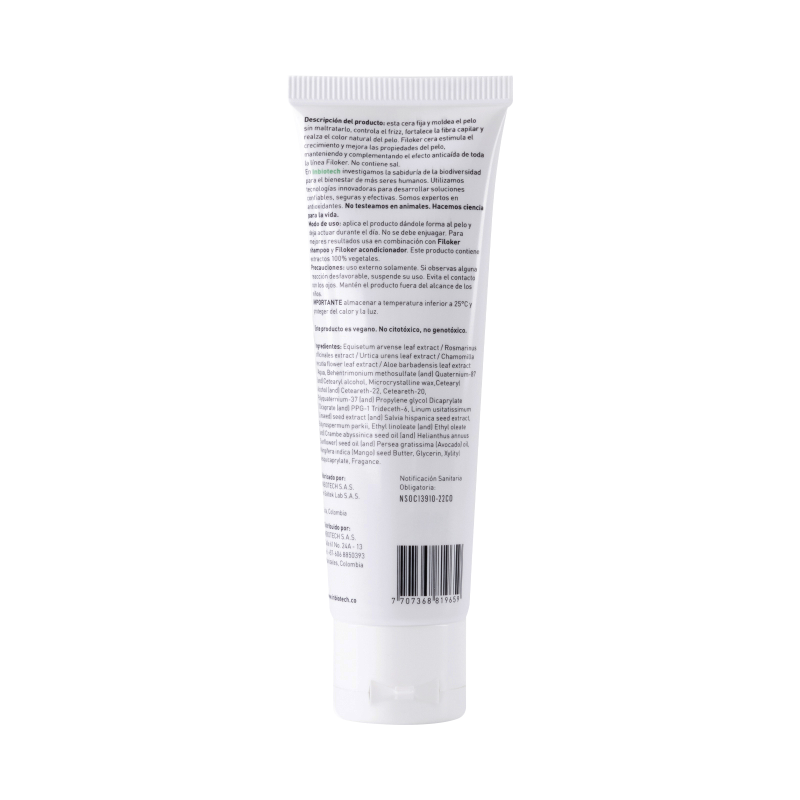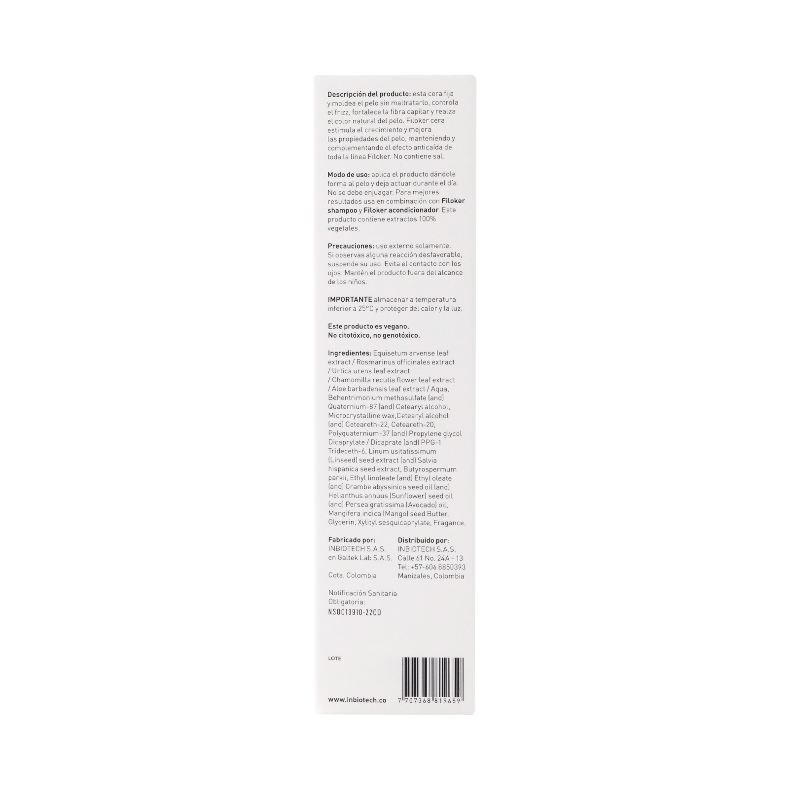 Filoker Cera, un producto enriquecido con antioxidantes diseñado para complementar tu rutina capilar con Filoker Shampoo y Filoker Acondicionador, manteniendo la fórmula activa durante todo el día. Esta cera ha sido especialmente desarrollada para revitalizar tu cabello.